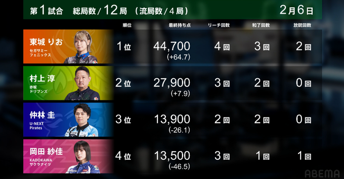Mリーグ2022 レギュラーシーズン 69日目/94日
