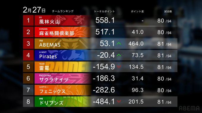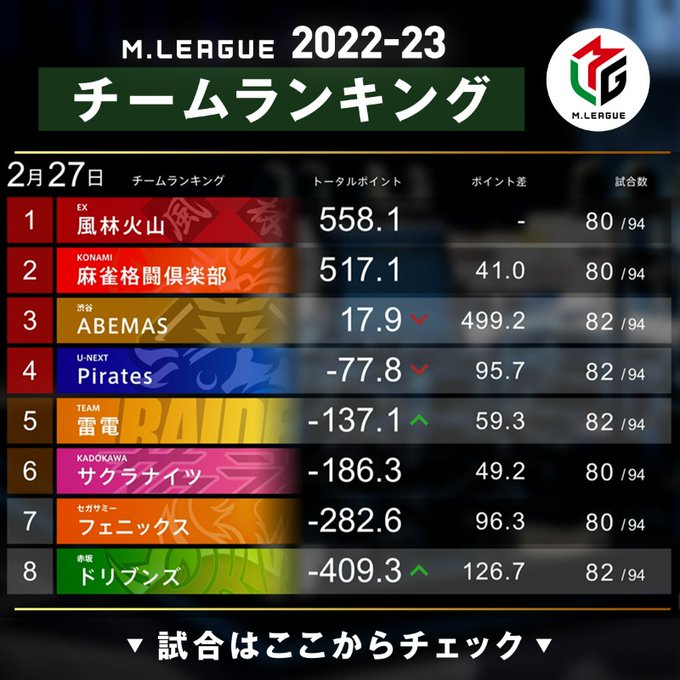 Mリーグ2022 レギュラーシーズン 81日目/94日