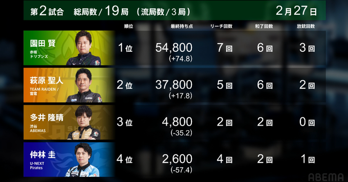 - キンマweb 第2試合「園田賢、圧巻の6連続和了!! 鈴木たろうのラスを見事リカバー!!【M…」